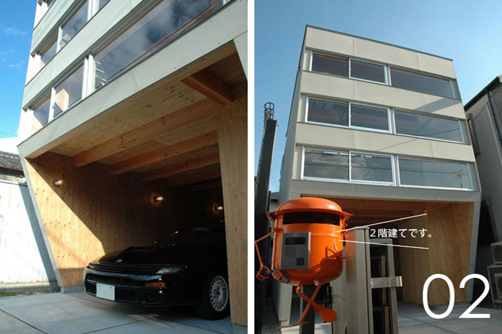 重箱を積み重ねたようなファサ-ドに、スーパーワンルームの構成.