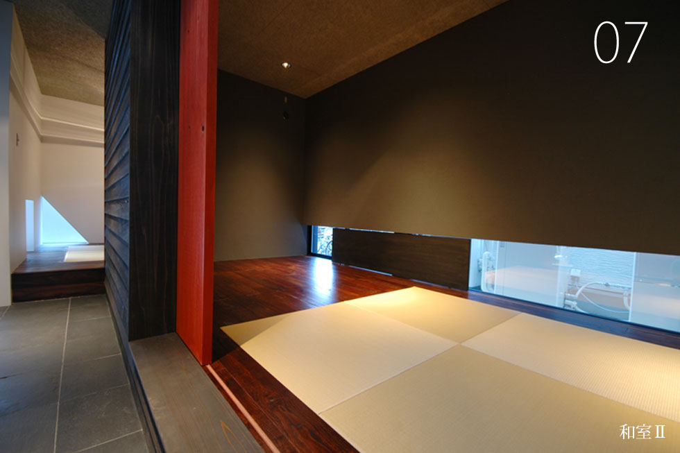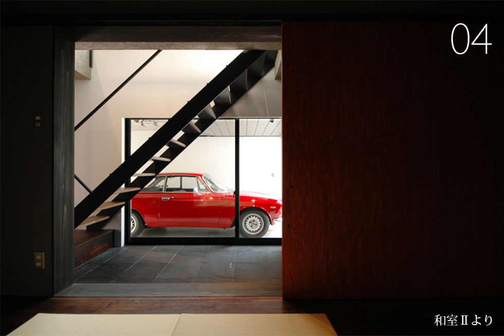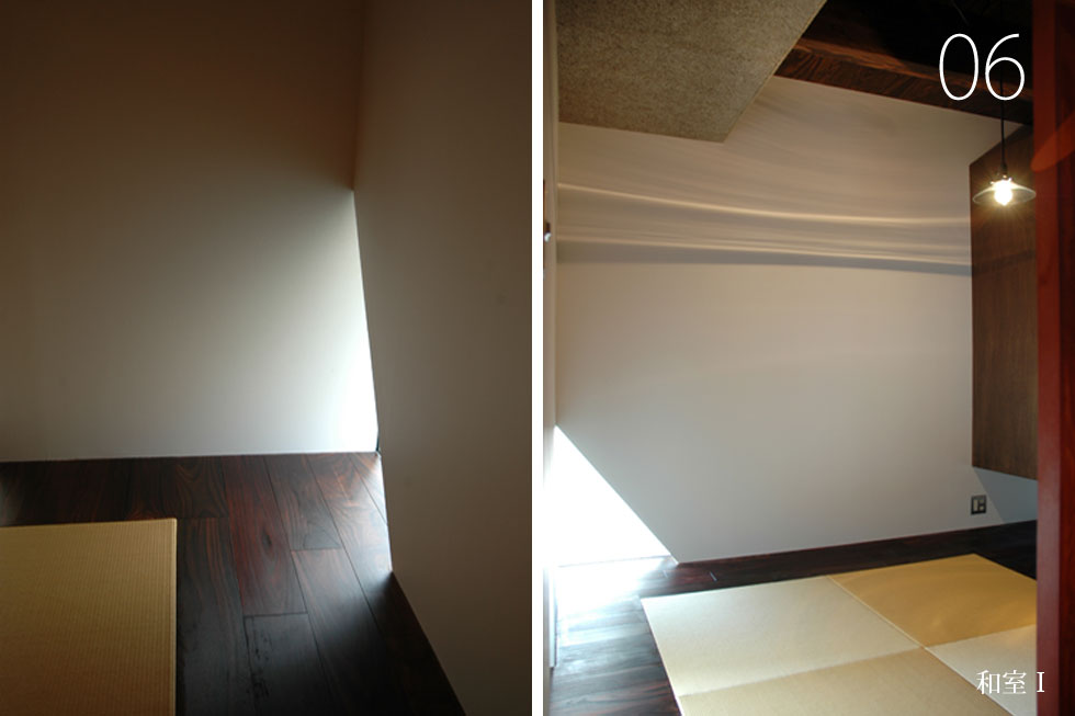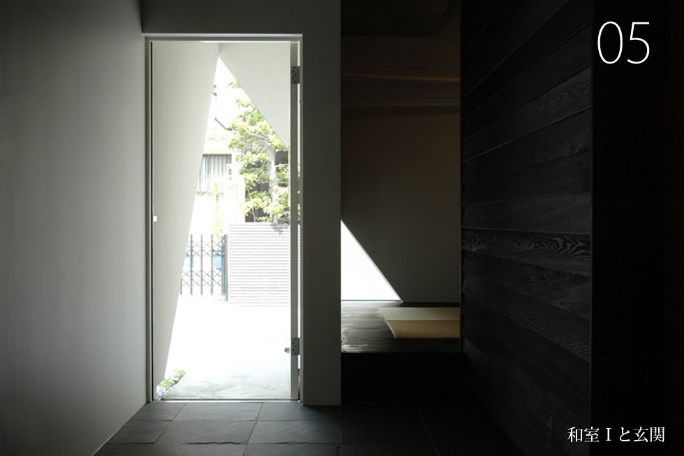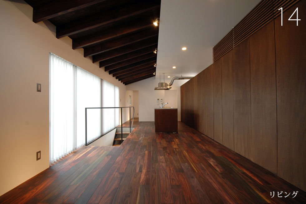 一階の薄暗さを積極的に受け入れた仕上材の選択.